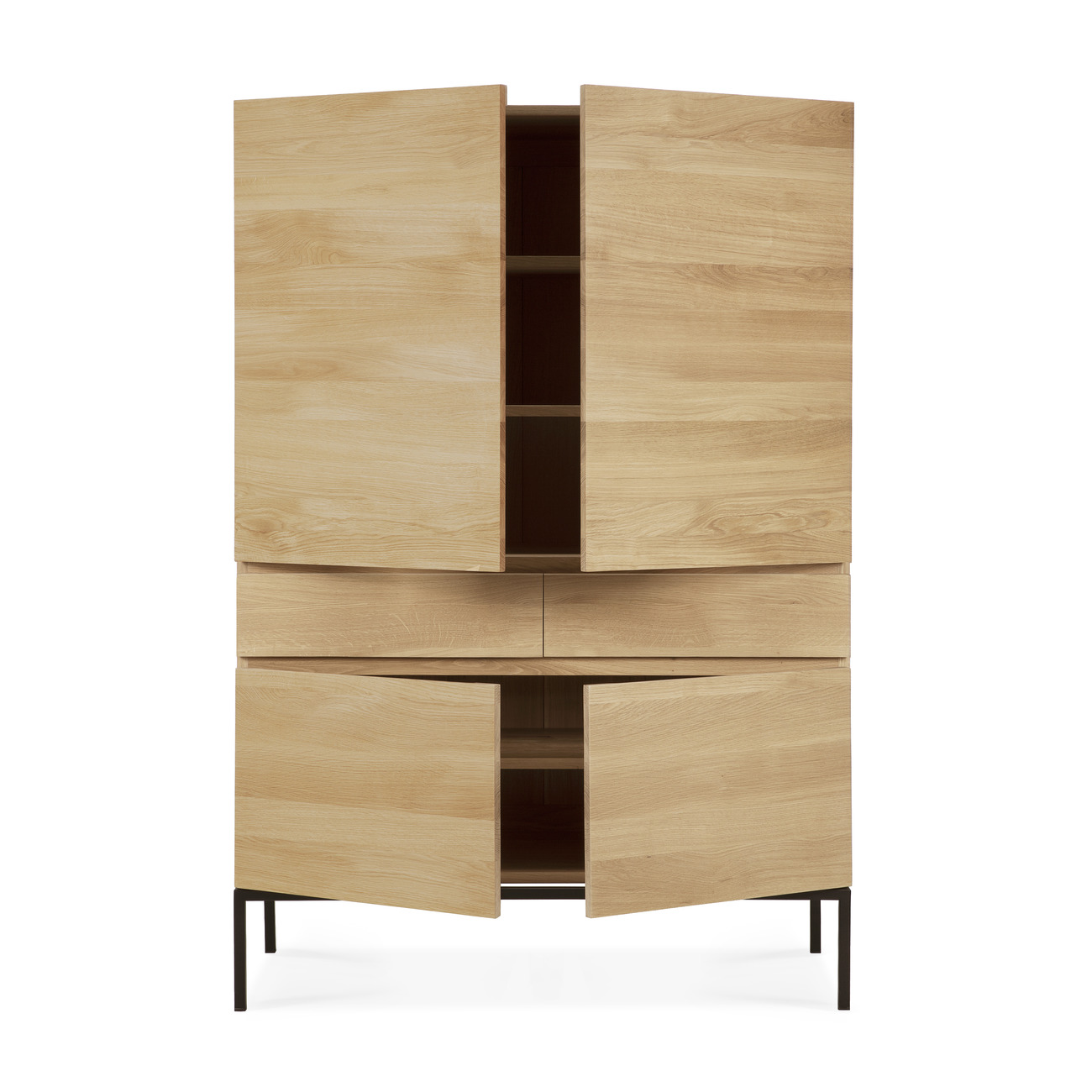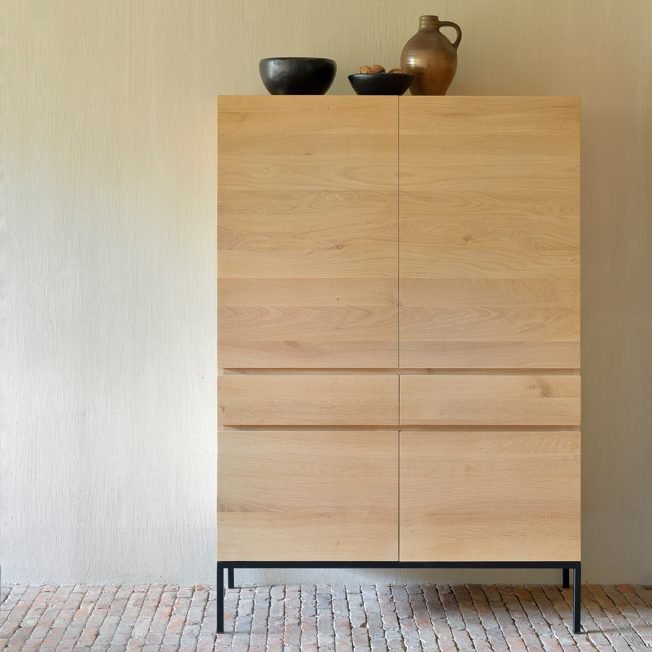 A clean and pure look with black metal legs, the Ethnicraft Ligna Oak Cabinet in solid oak offers a perfect container facility for the kitchen, living room or dining room and is sure to be perfect for many years to come.